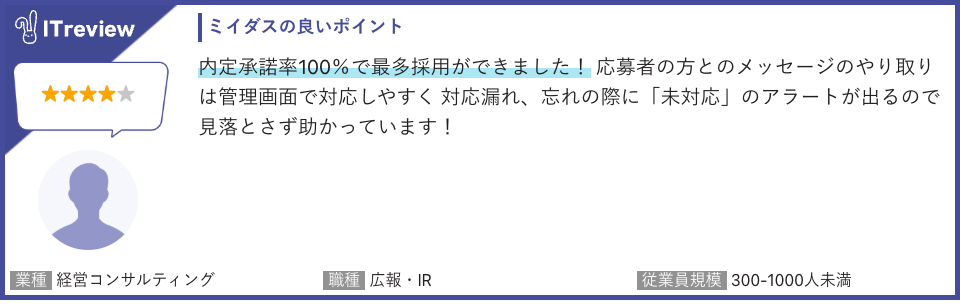 『ミイダス』をご利用いただいている皆様からは以下のようなコメントを頂戴しております。