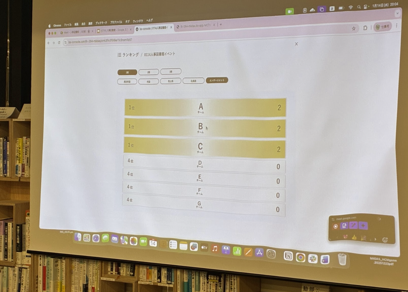 「はたらいて、笑おう。」をビジョンに掲げるパーソルグループのミイダス株式会社(本社:東京都品川区、代表取締役社長:後藤 喜悦、以下「当社」)は、2026年1月14日(水)に人事図書館を運営する株式会社Trustyyle(トラスタイル/本社:東京都中央区、代表:吉田 洋介)と共催で、当社が開発した「人的資本経営ゲーム」を実施しました。