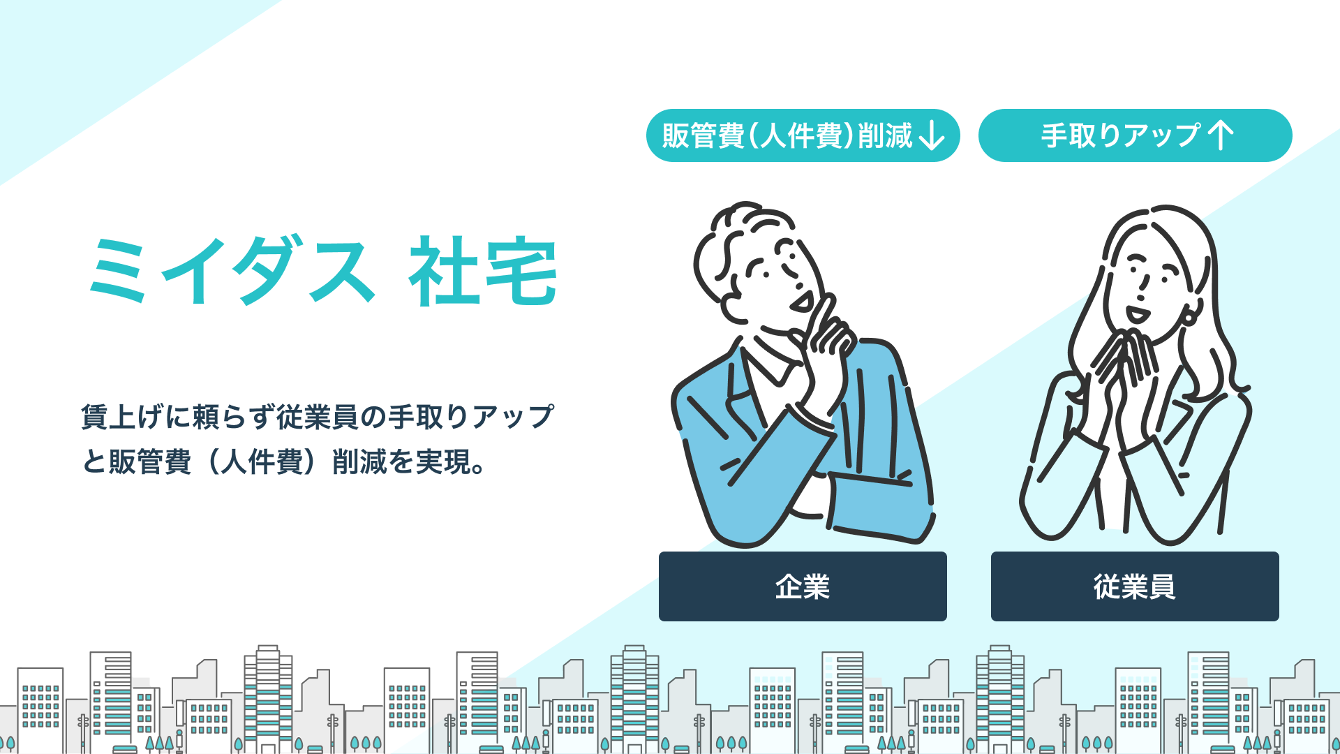 「はたらいて、笑おう。」をビジョンに掲げるパーソルグループのミイダス株式会社(本社:東京都品川区、代表取締役社長:後藤 喜悦、以下「当社」)は、中途採用支援サービス『ミイダス』を提供しています。このたび当社は、賃上げに頼らず従業員の手取りアップと販管費(人件費)削減を実現する社宅制度を活用した「ミイダス 社宅」サービスの提供を2026年4月1日(水)より開始します。